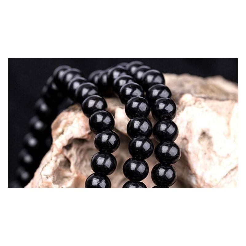 Bracelet Tibétain, Mala en perles de bois noir 6mm.