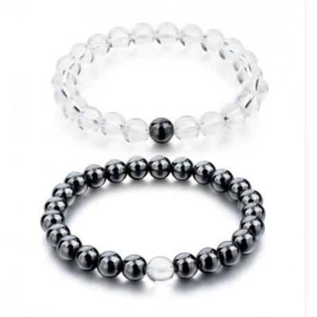 Bracelets de distance - Hématite et Quartz - boules 8mm