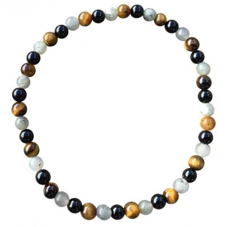 Bracelet Multipierres Labradorite / Onyx / Œil de Tigre grade A - boules 4mm