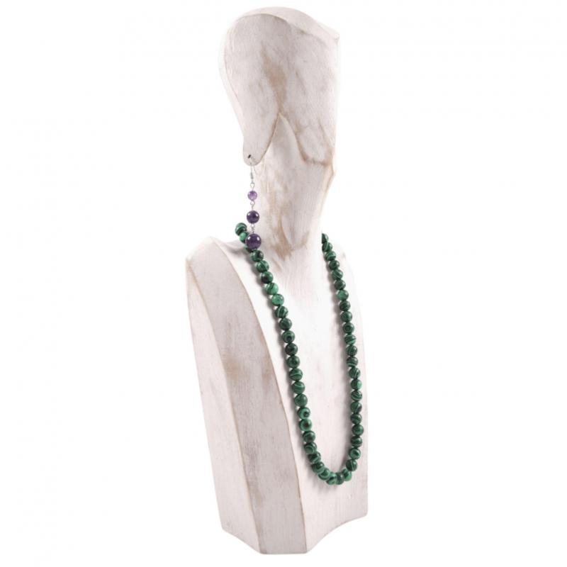 Présentoir en bois pour parures colliers et boucles 35cm | Finition "Blanc Cérusé"