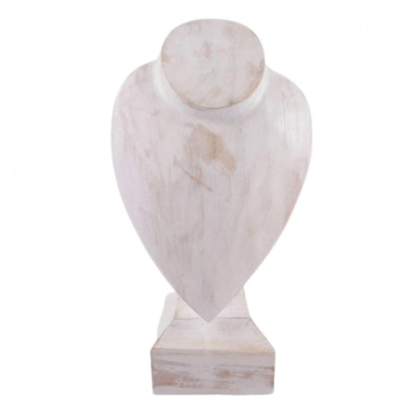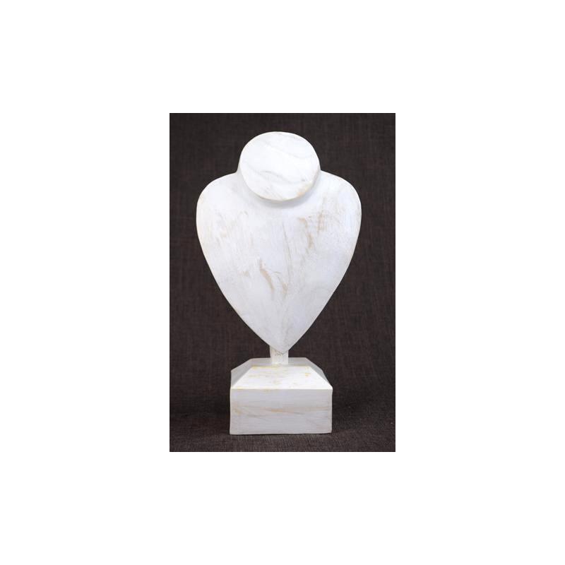 Buste d'exposition Présentoir Bijoux en bois 30cm | Finition "Blanc Cérusé"