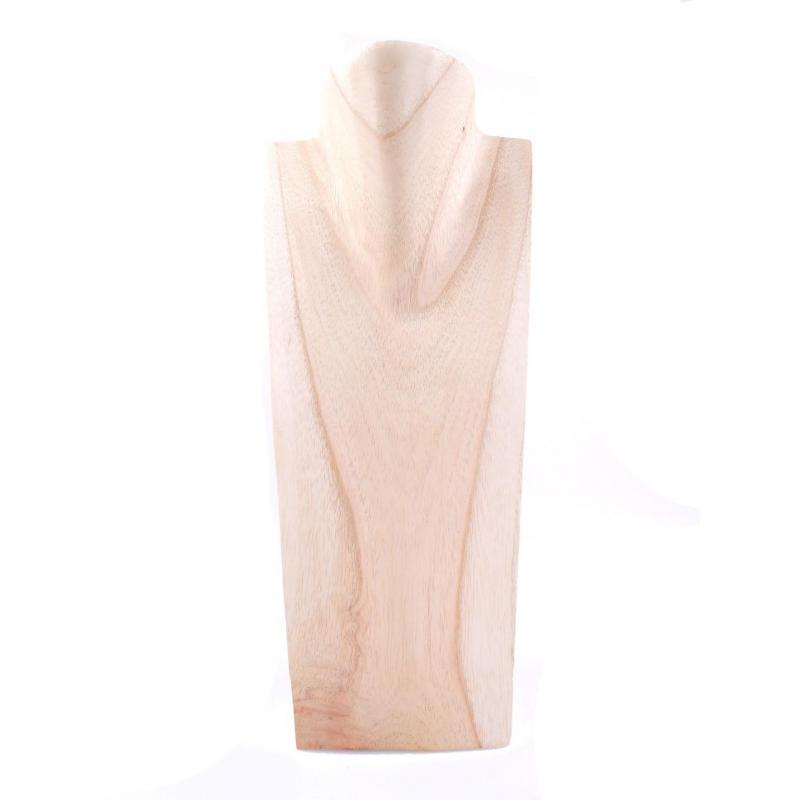 Buste Présentoir à colliers en bois 35cm | Finition "Bois brut naturel"