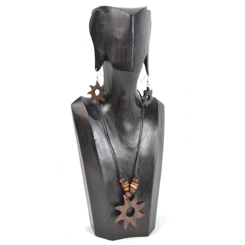 Présentoir en bois pour parures colliers et boucles 35cm | Finition "Chocolat"