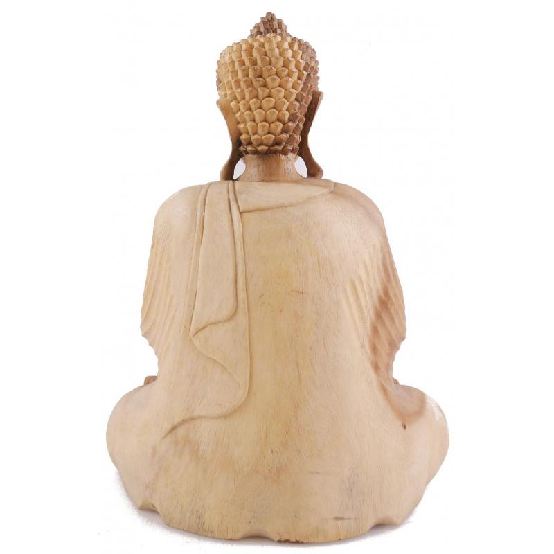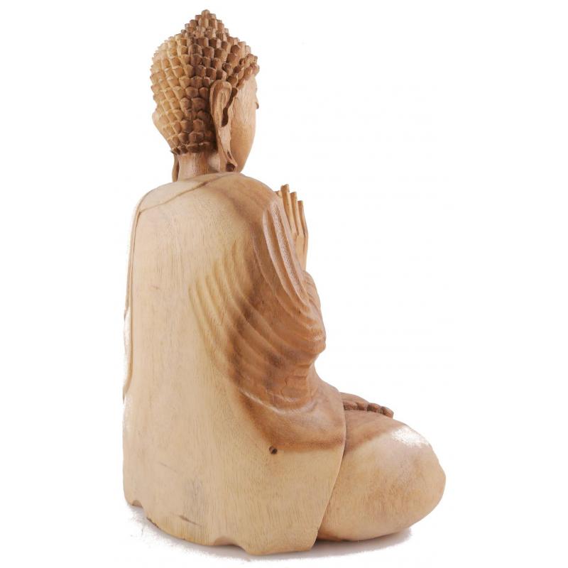 Grande statue de Bouddha assis en bois 40cm | Sculptée à la main
