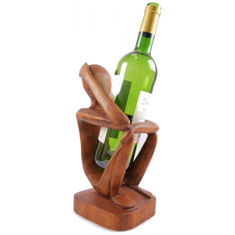 Porte-bouteille "Penseur" 30cm en Bois Teinté