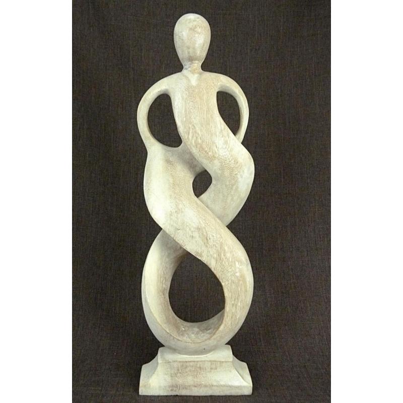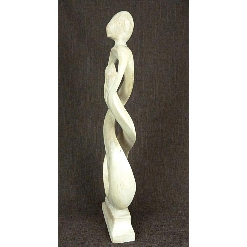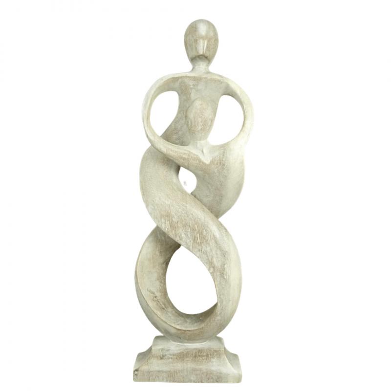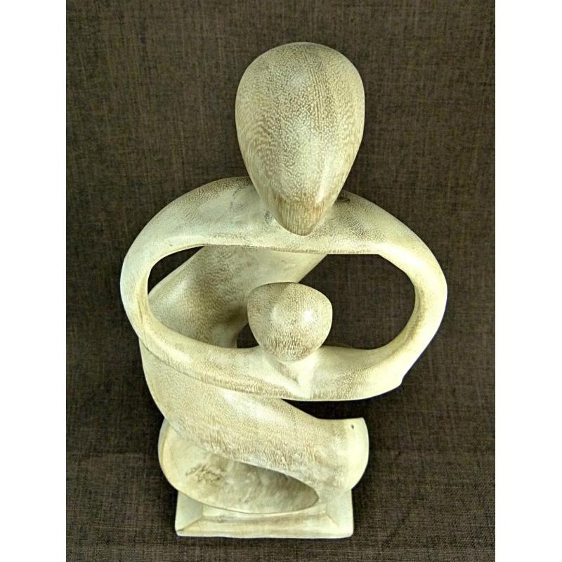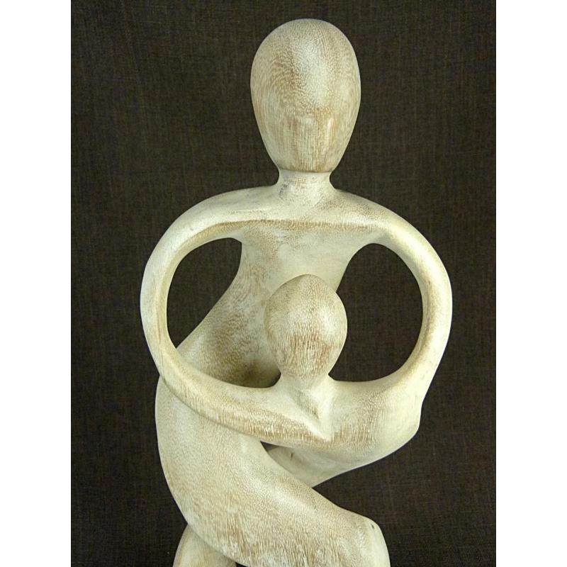 Statue abstraite Union Parent-Enfant 50cm en bois Blanc Cérusé