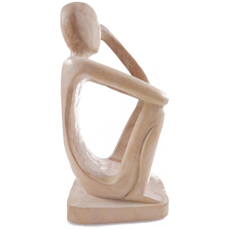 Porte-bouteille "Penseur" 30cm en Bois Blanc Cérusé