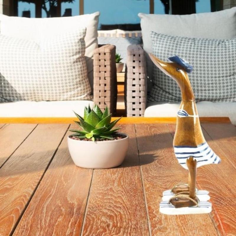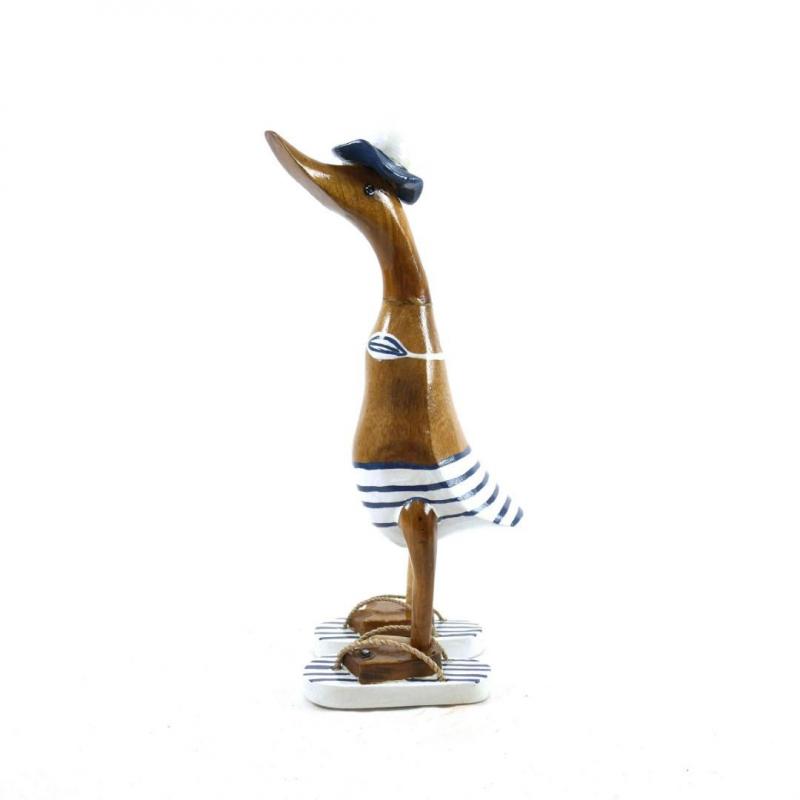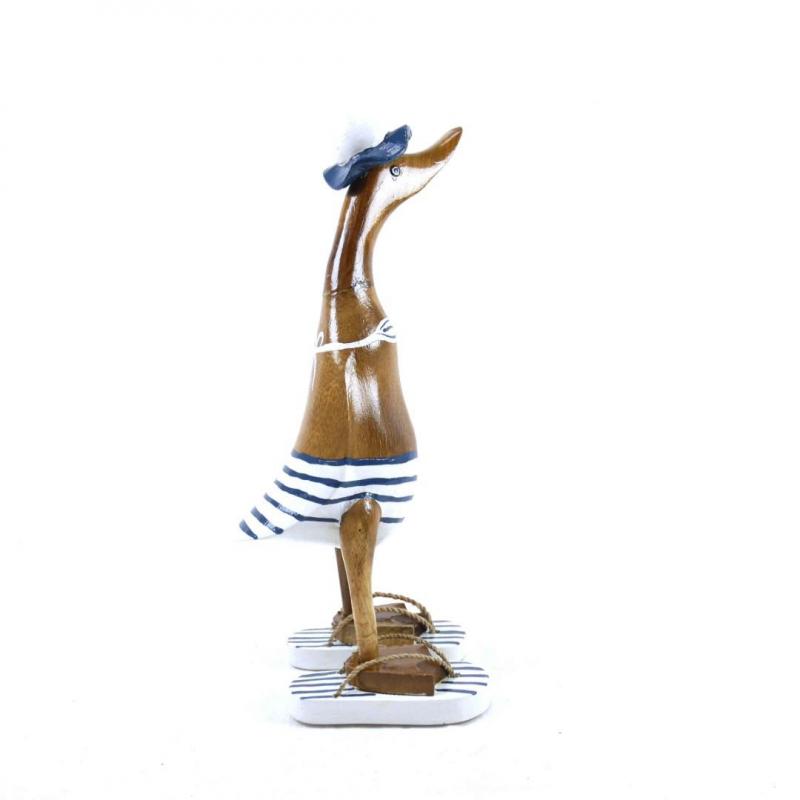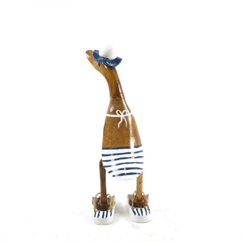 Canard décoratif en bois 35cm - Bikini rayé bleu & blanc