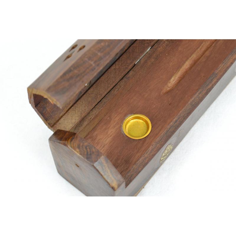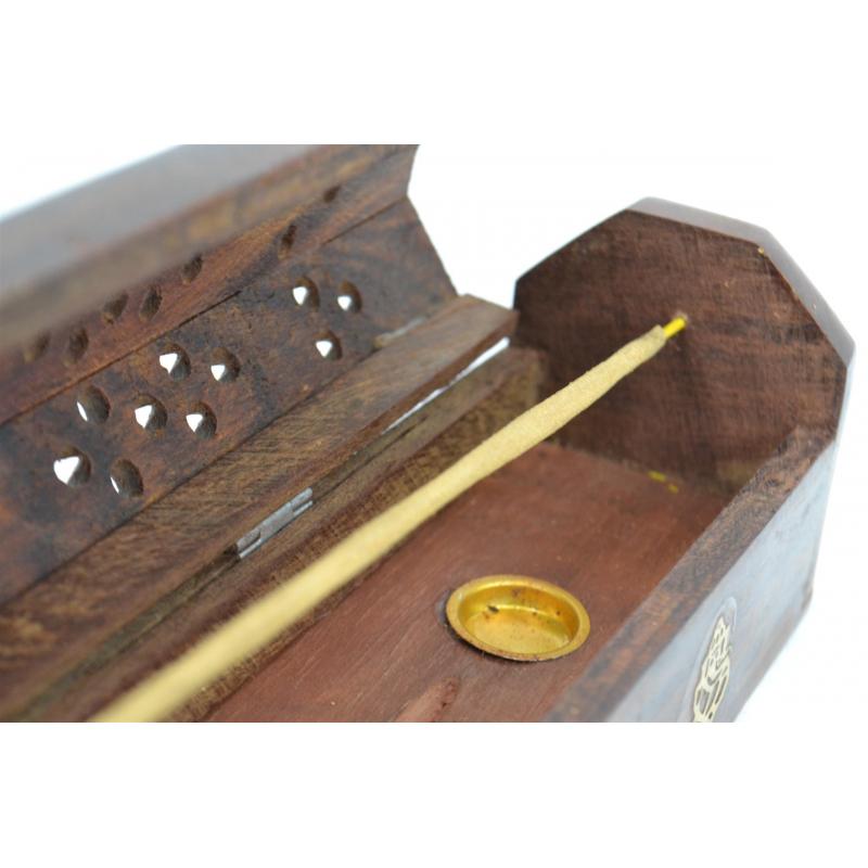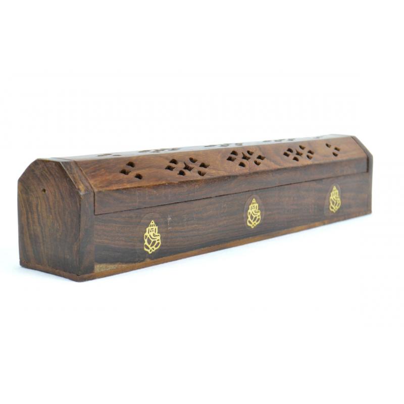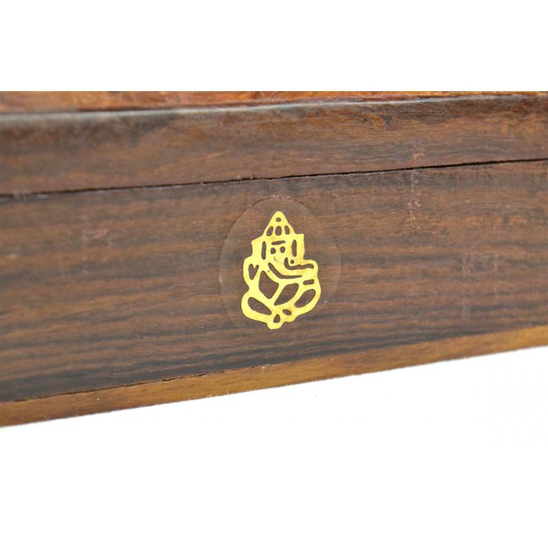 Porte-encens avec rangement / boîte en bois motif Ganesh