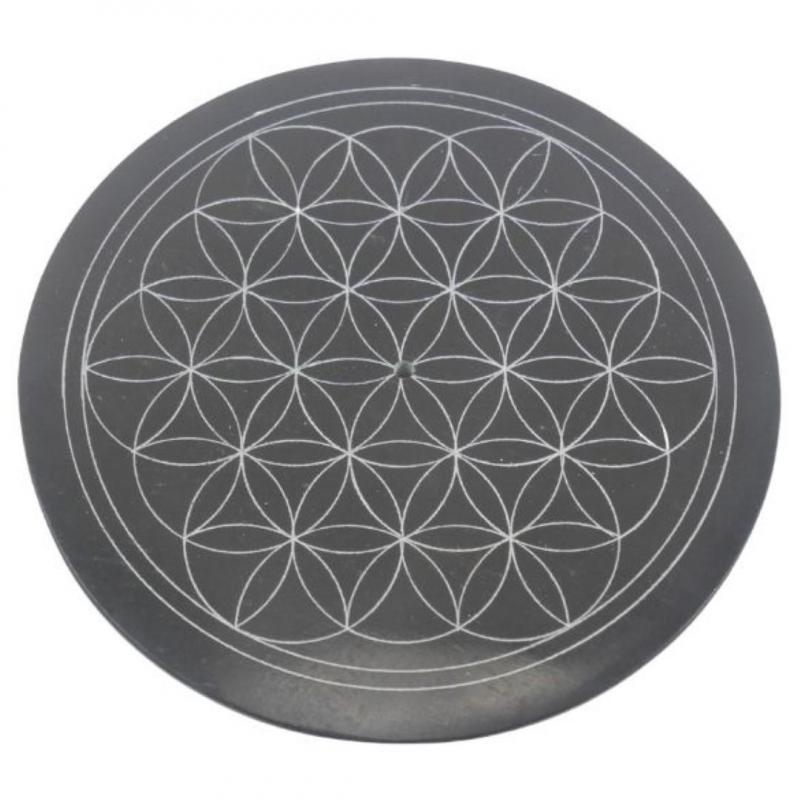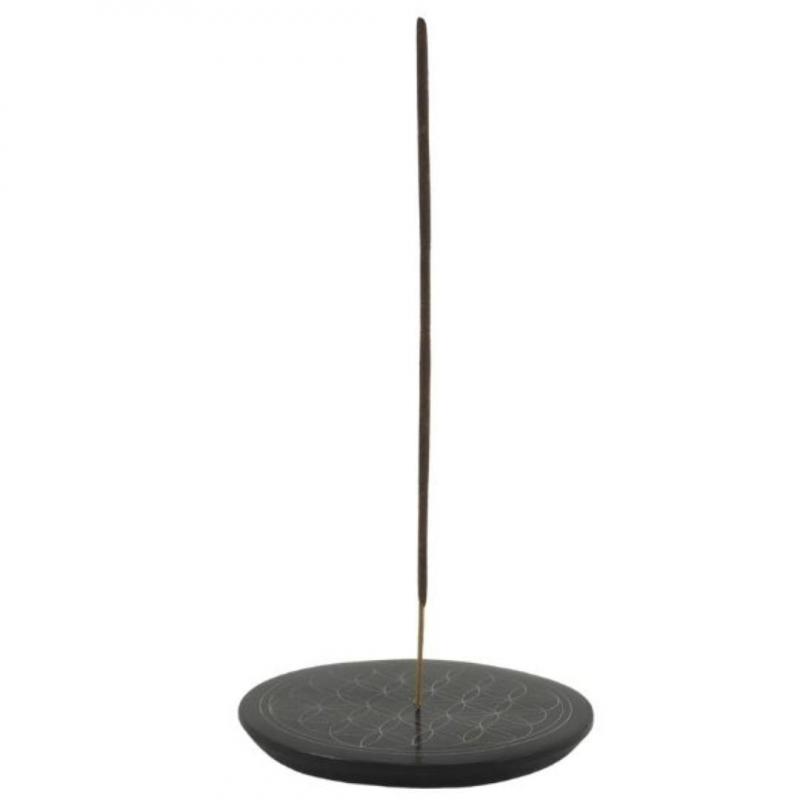 Porte-encens rond noir et blanc en Pierre à savon - Symbole fleur de vie