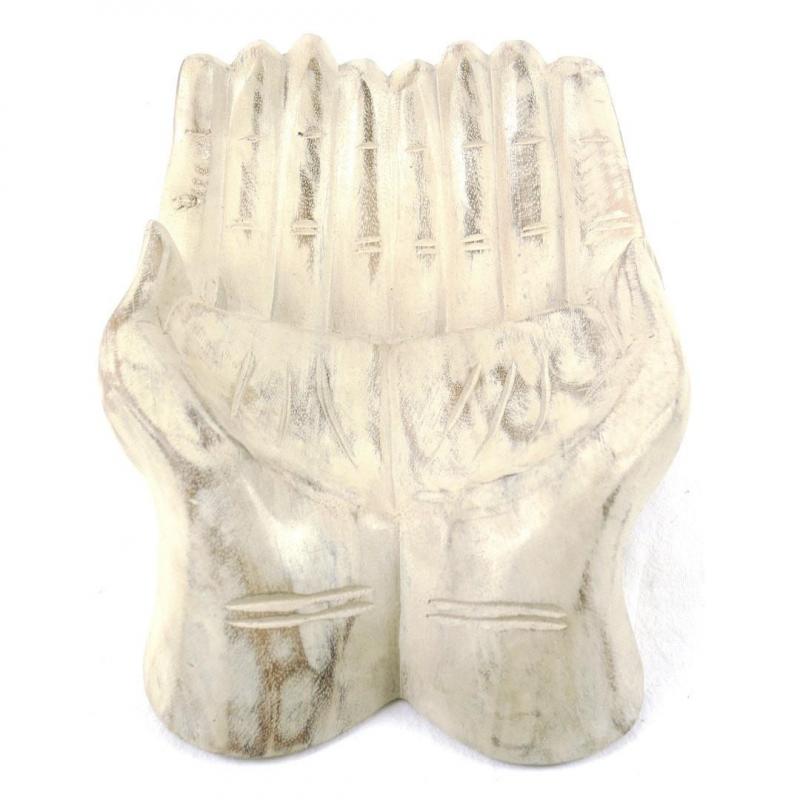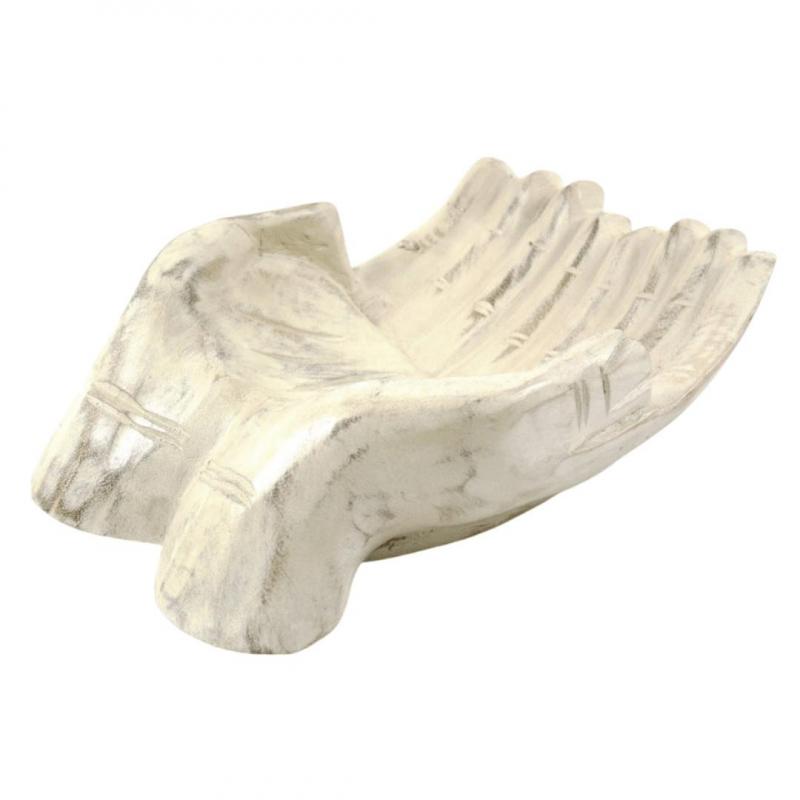 Grand vide-poche forme Mains en bois massif teinte blanc cérusé