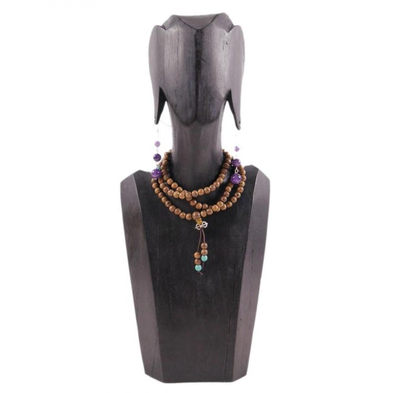 Buste Présentoir à colliers et boucles d'oreilles en bois massif noir