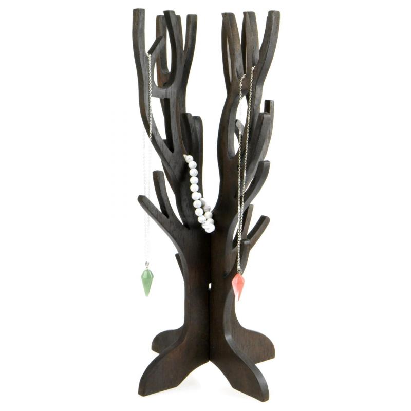 Arbre à Bijoux pour colliers, bracelets, montres - bois massif teinté marron chocolat