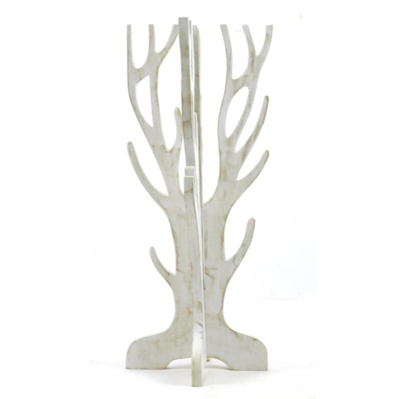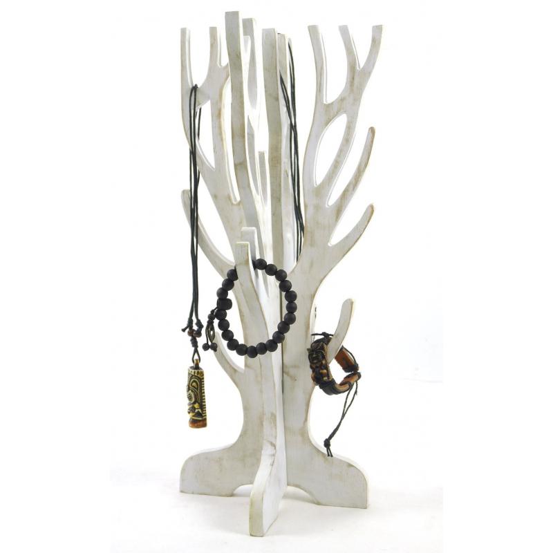 Arbre à Bijoux pour colliers, bracelets, montres - bois massif finition blanc cérusé