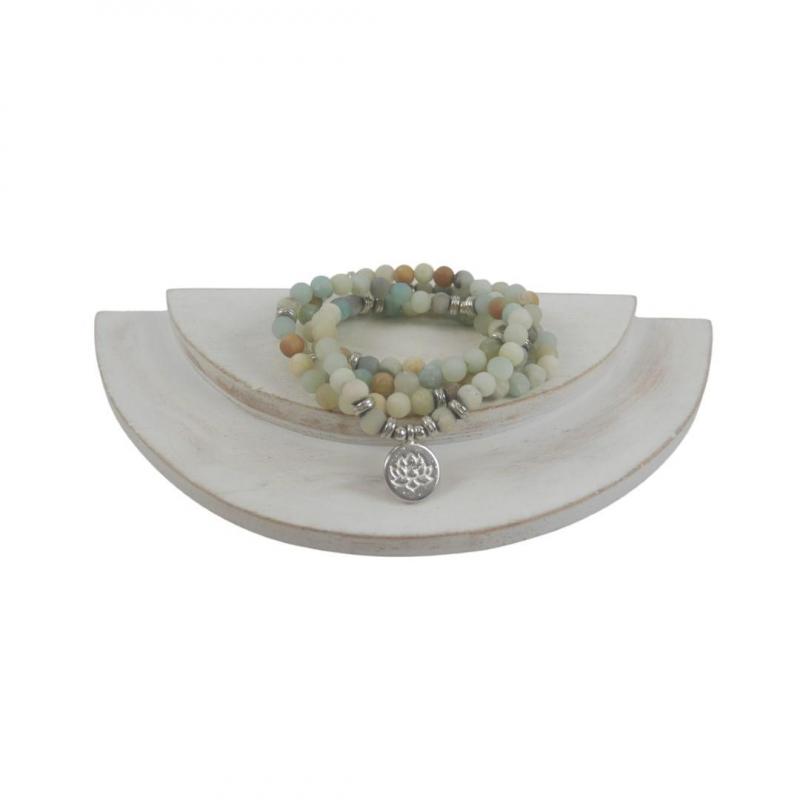 Plateau de présentation 1/2 cerle - Présentoir à bijoux 2 niveaux en bois blanc cérusé