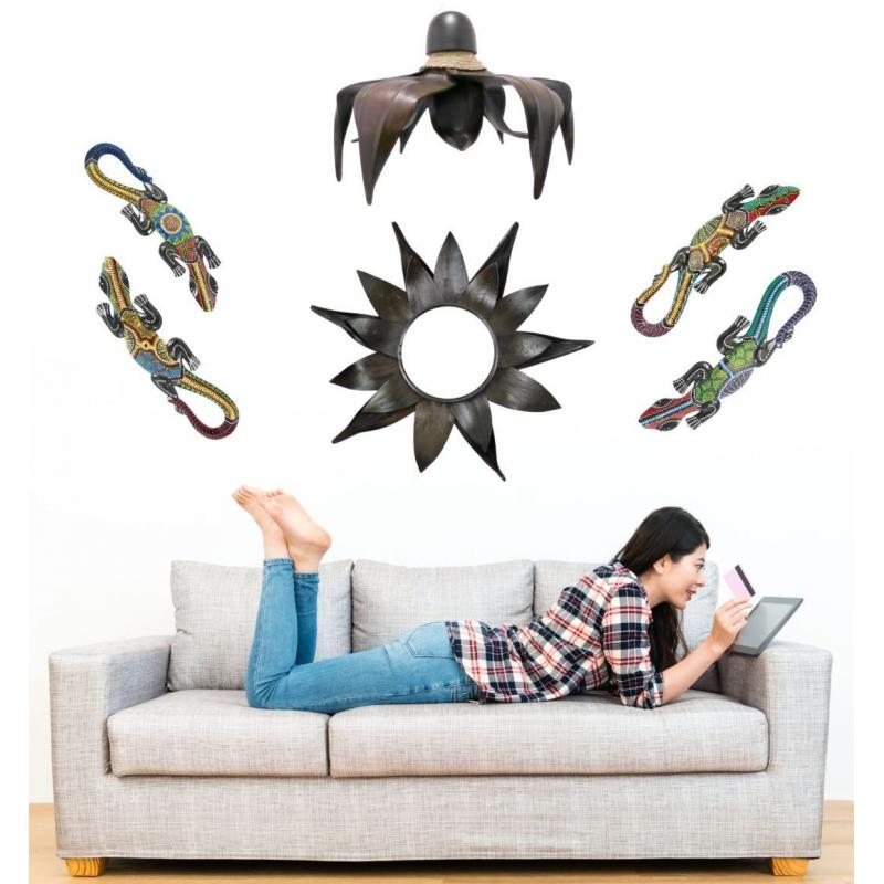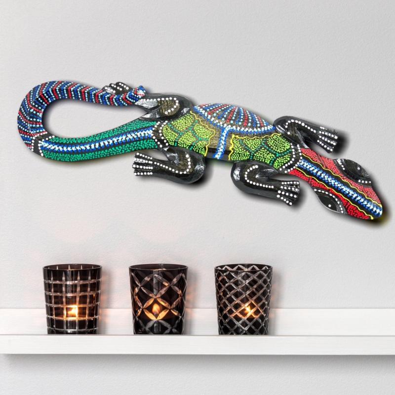 Gecko multicolore - décor mural en bois peint à la main 50cm