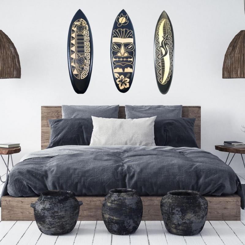 Planche de surf murale en bois motif Tiki 50cm | Idéale chambre d'Ado !