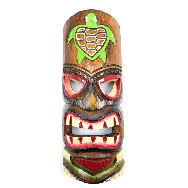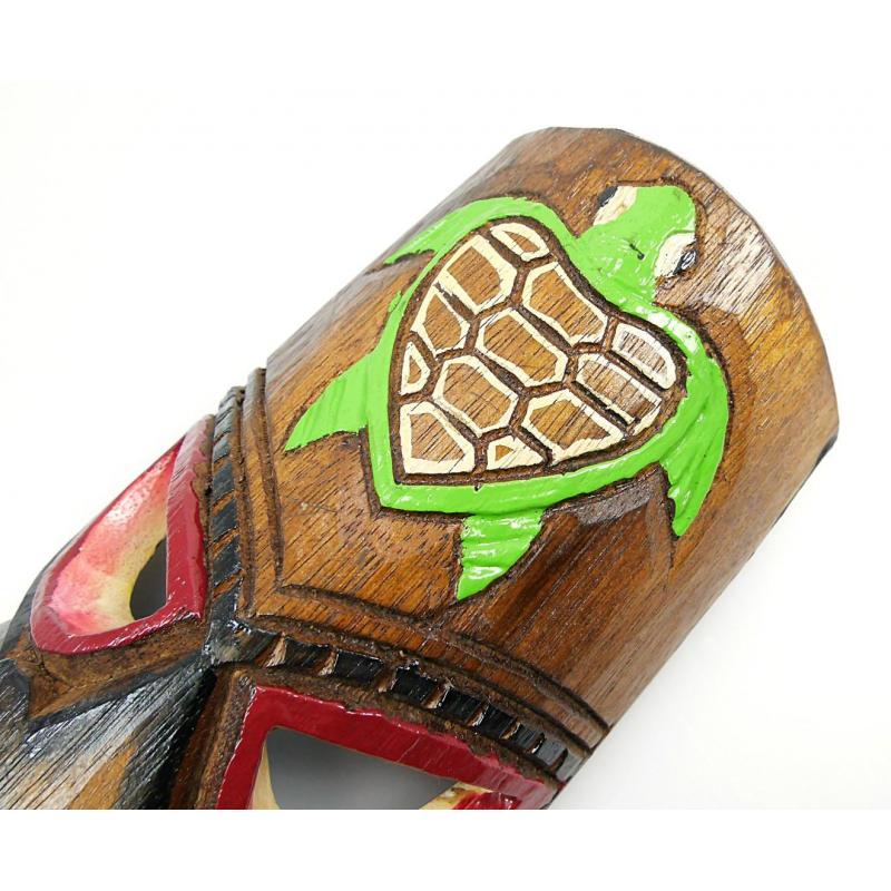 Masque Tiki 30cm en bois motif Tortue. Décoration Hawaï.