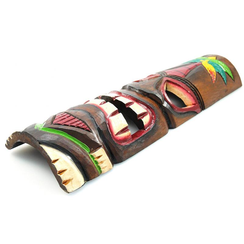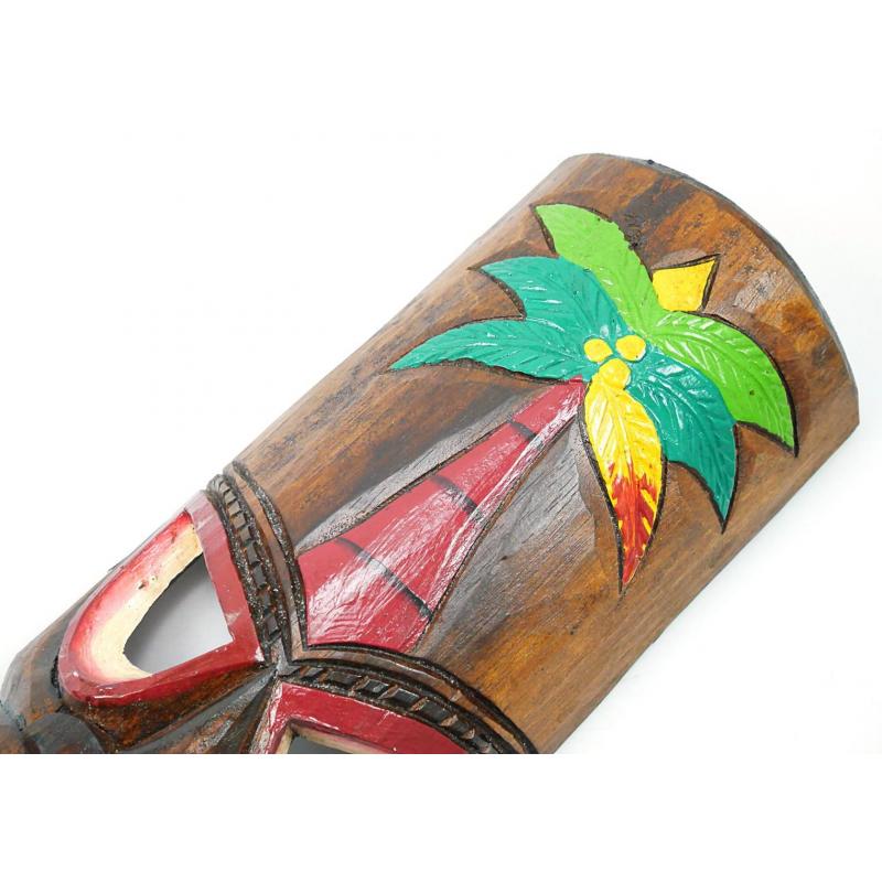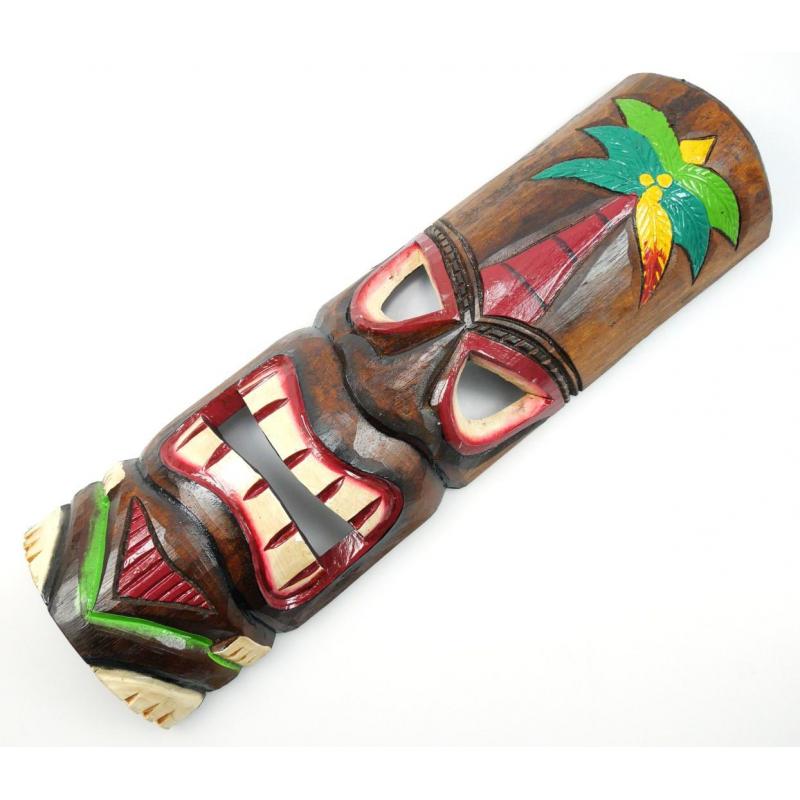 Masque Tiki 50cm en bois coloré motif Cocotier. Décoration Tiki.