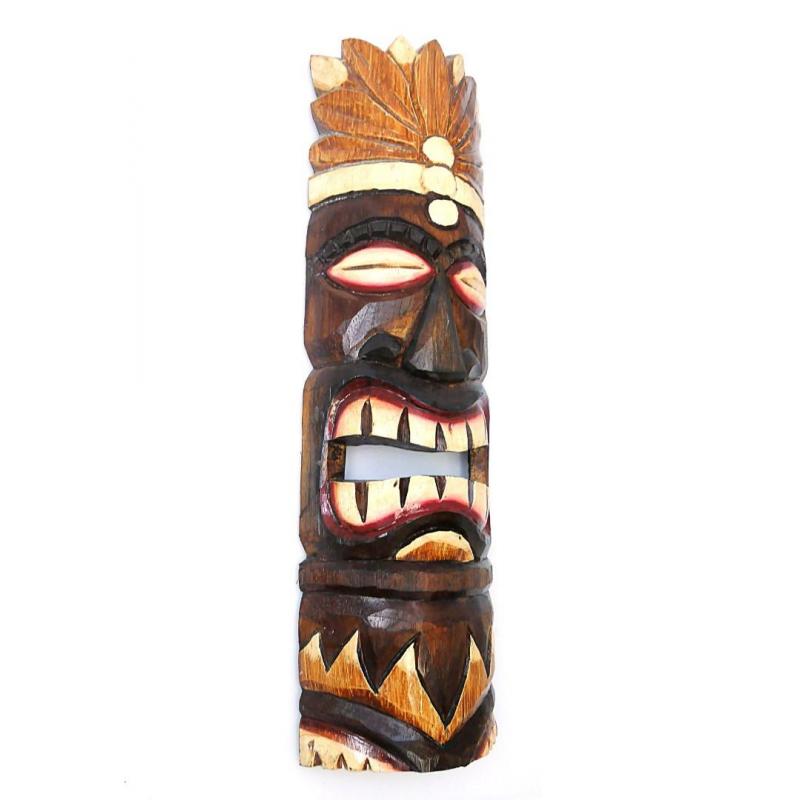 Masque Tiki 50cm en bois motif Plumes. Déco tribale polynésienne.