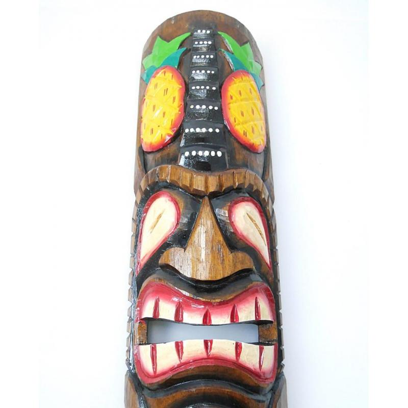 Masque Tiki 50cm en bois motif Ananas. Déco murale Tiki Bar.