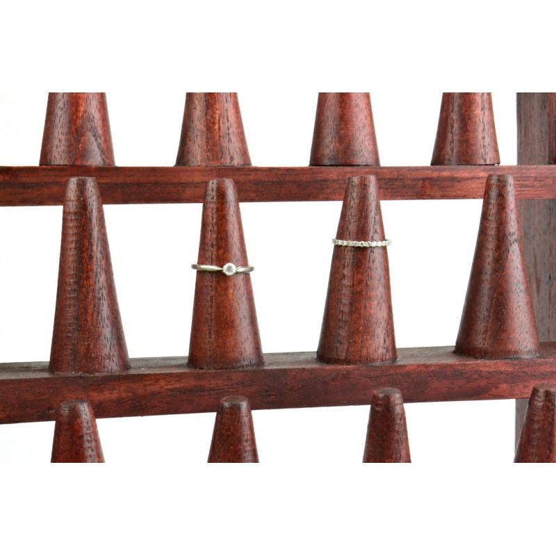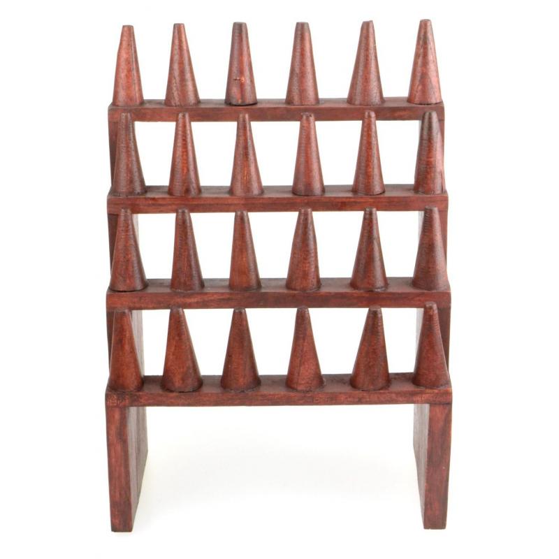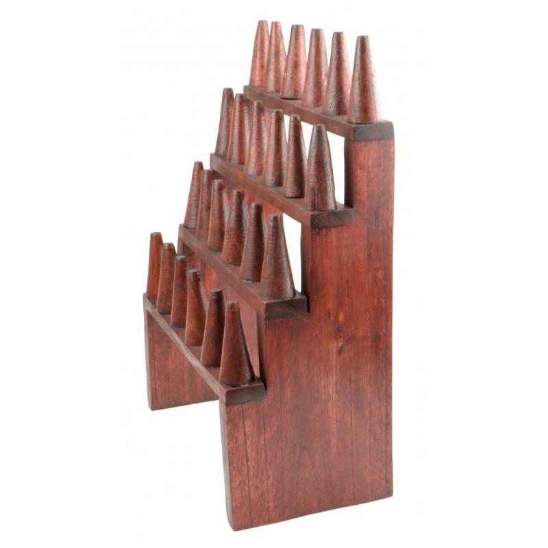 Grand porte-bagues / Présentoir à bagues (24 cônes) en bois massif couleur rouge