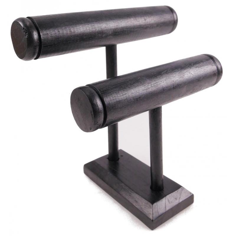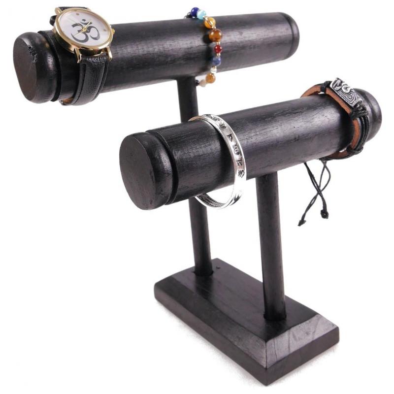 Présentoir à bracelets et montres 2 joncs en bois massif teinté noir