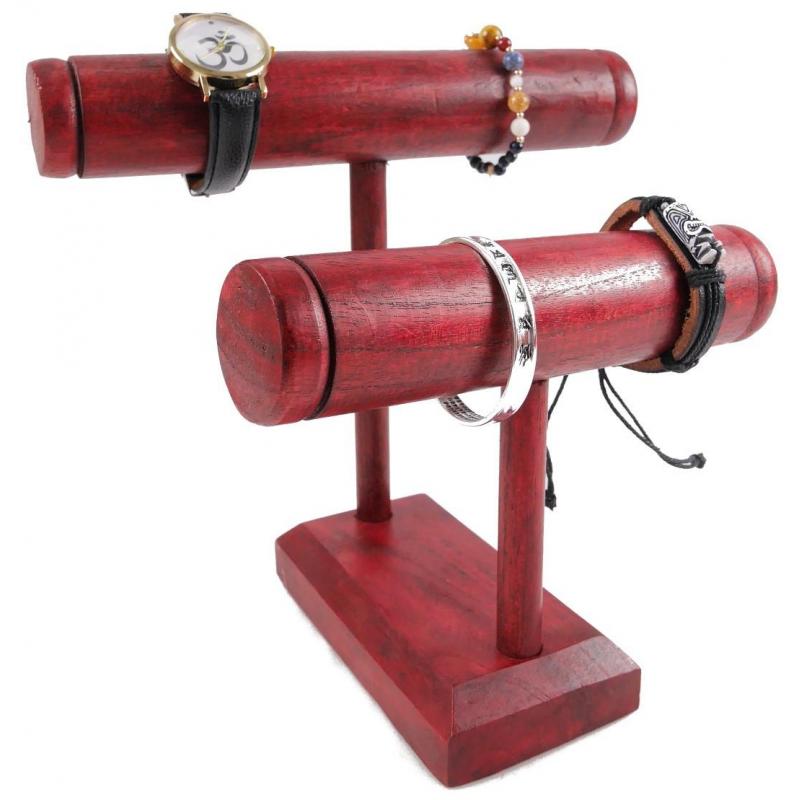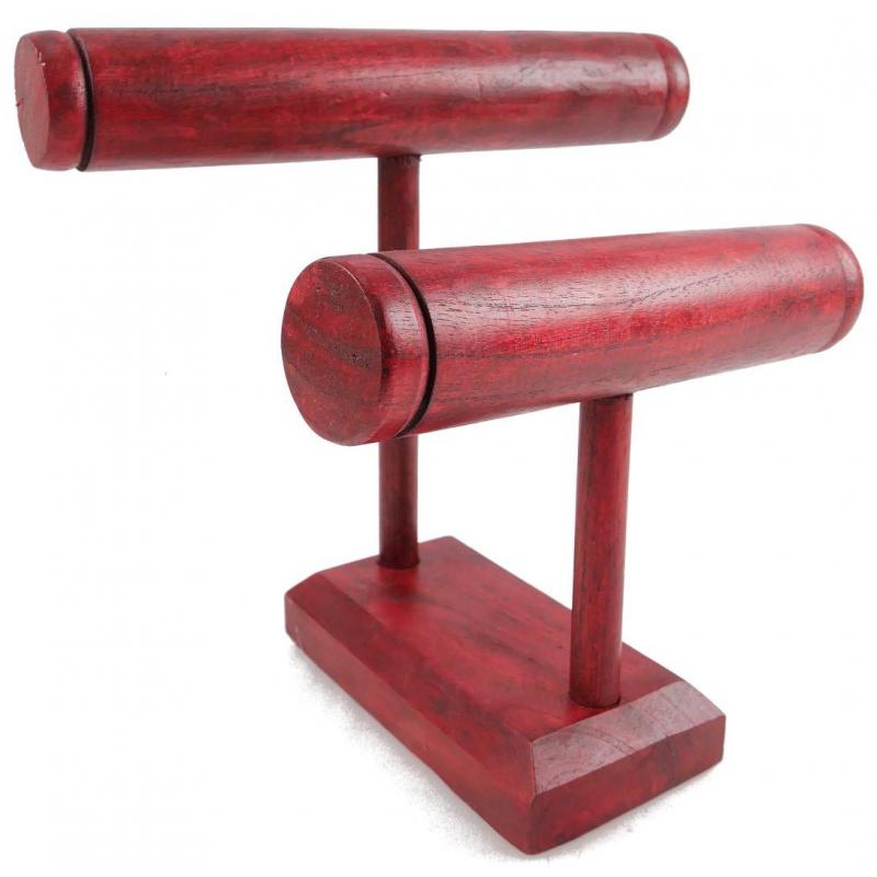 Présentoir à bracelets Nomade 2 joncs en bois | Finition Rouge Intense