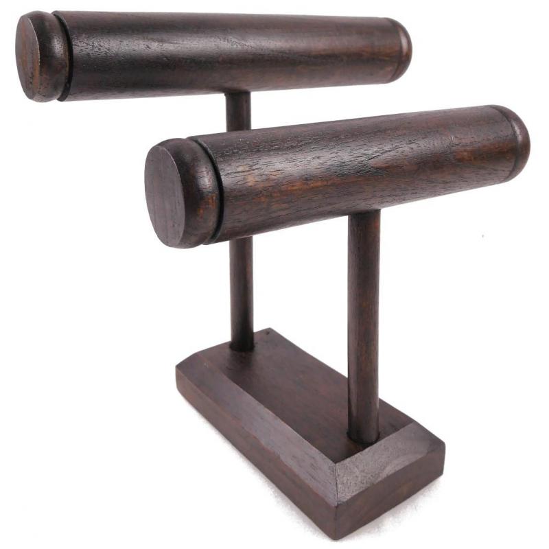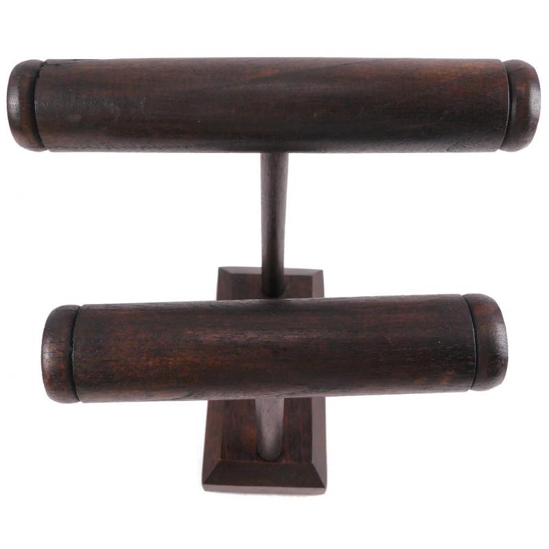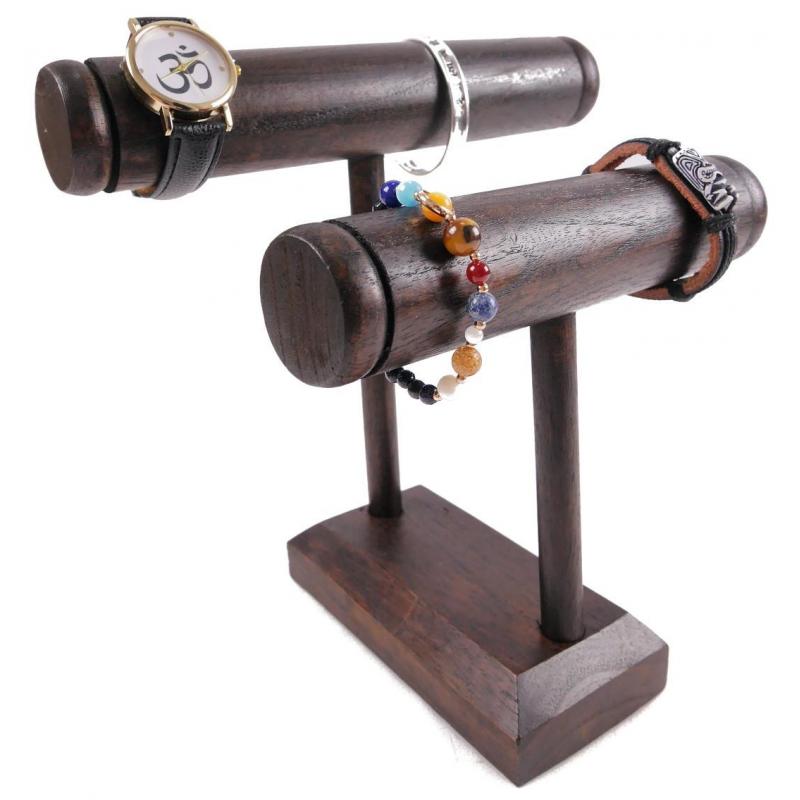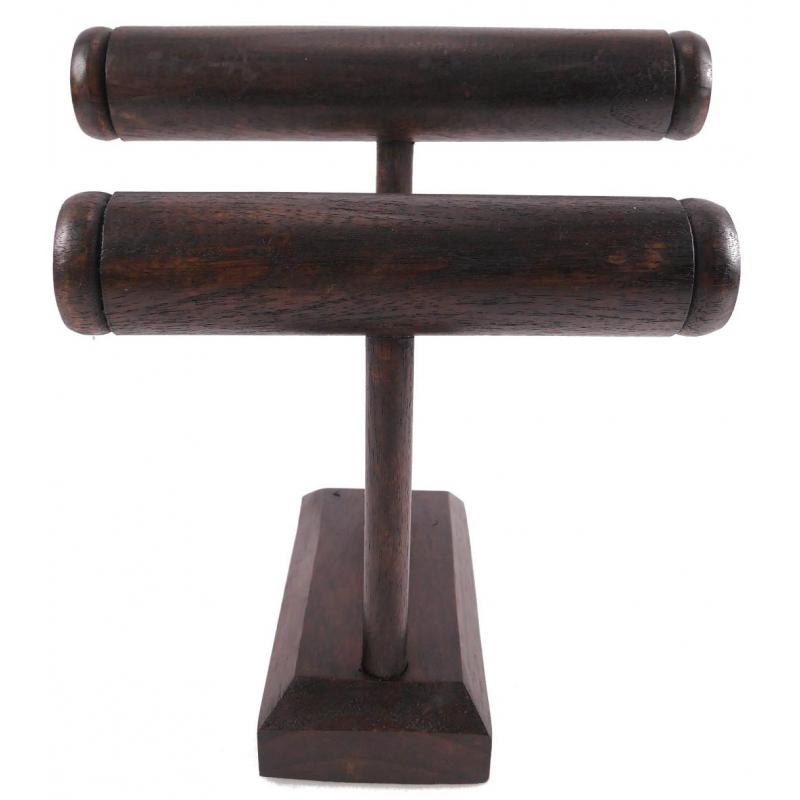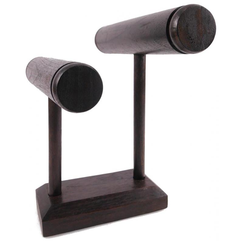 Présentoir à bracelets et montres 2 joncs en bois massif teinté chocolat