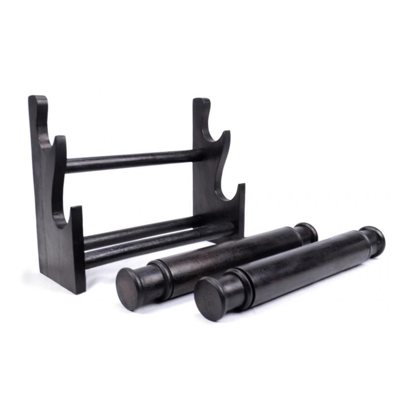 Porte-bracelets et montres / Présentoir à bijoux 2 joncs en bois massif teinte noir ébène