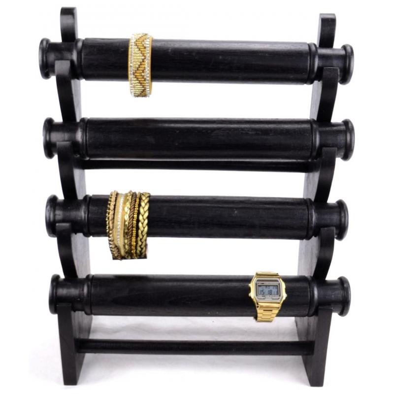 Porte bracelets et montres 4 joncs en bois massif teinte noire