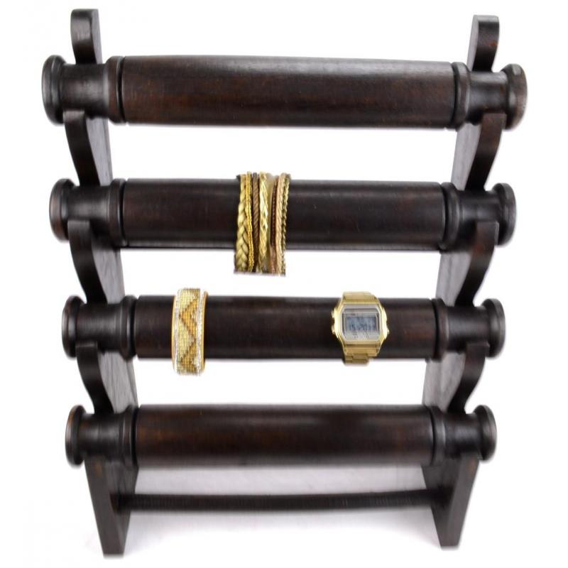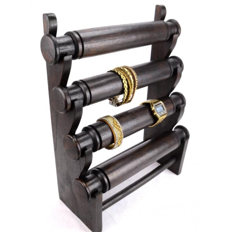 Porte bracelets et montres 4 joncs en bois massif teinte marron chocolat