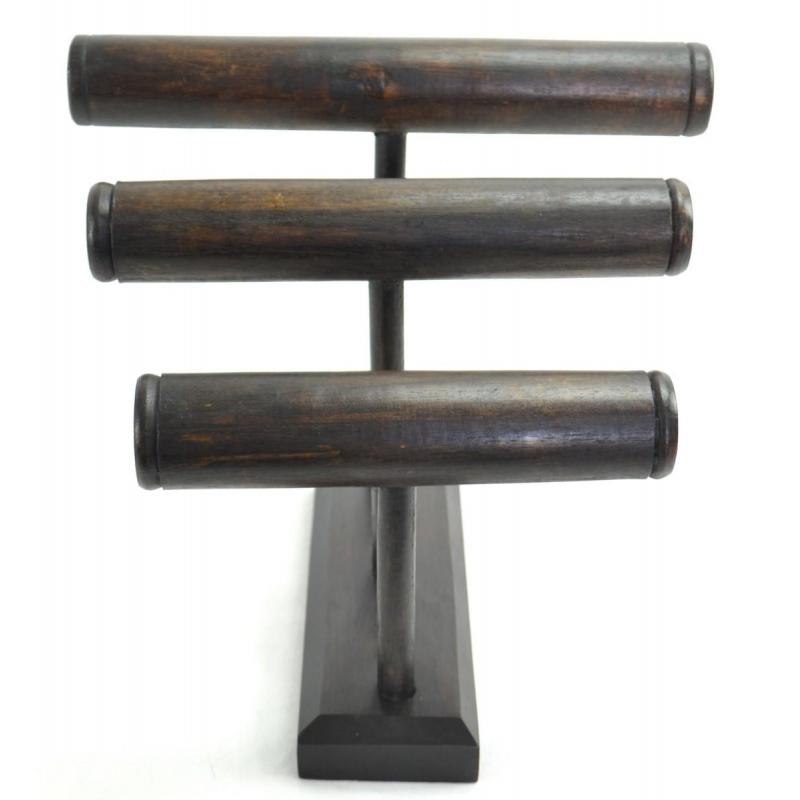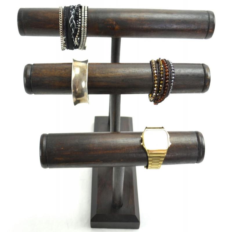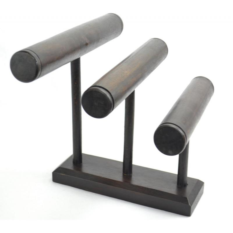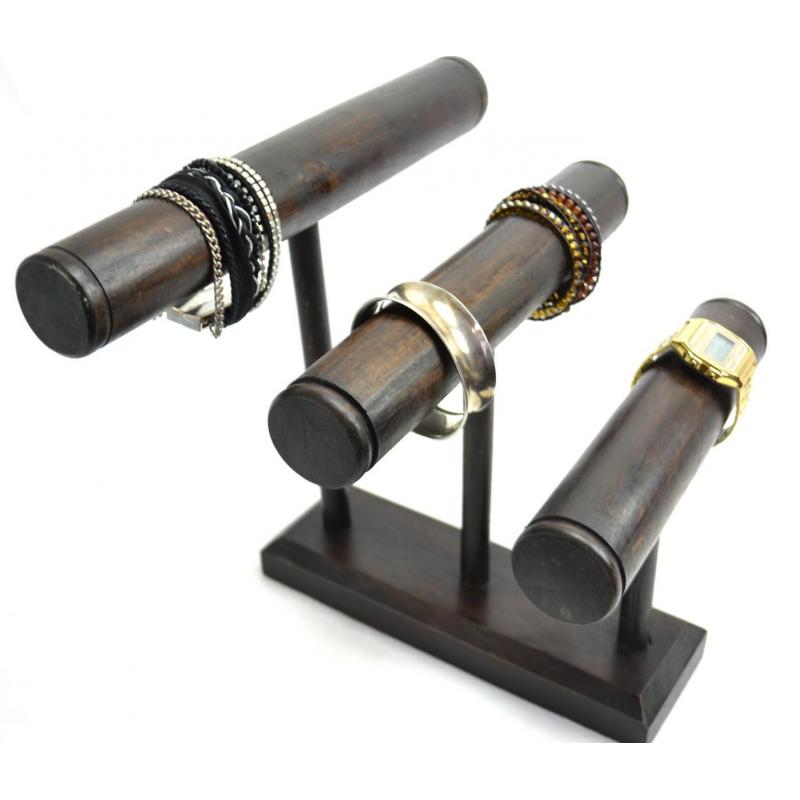 Présentoir à bracelets et montres 3 joncs en bois massif teinte marron