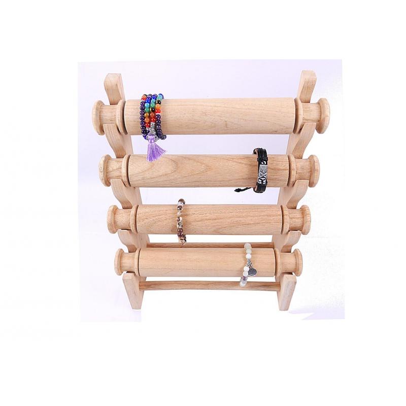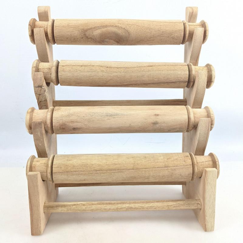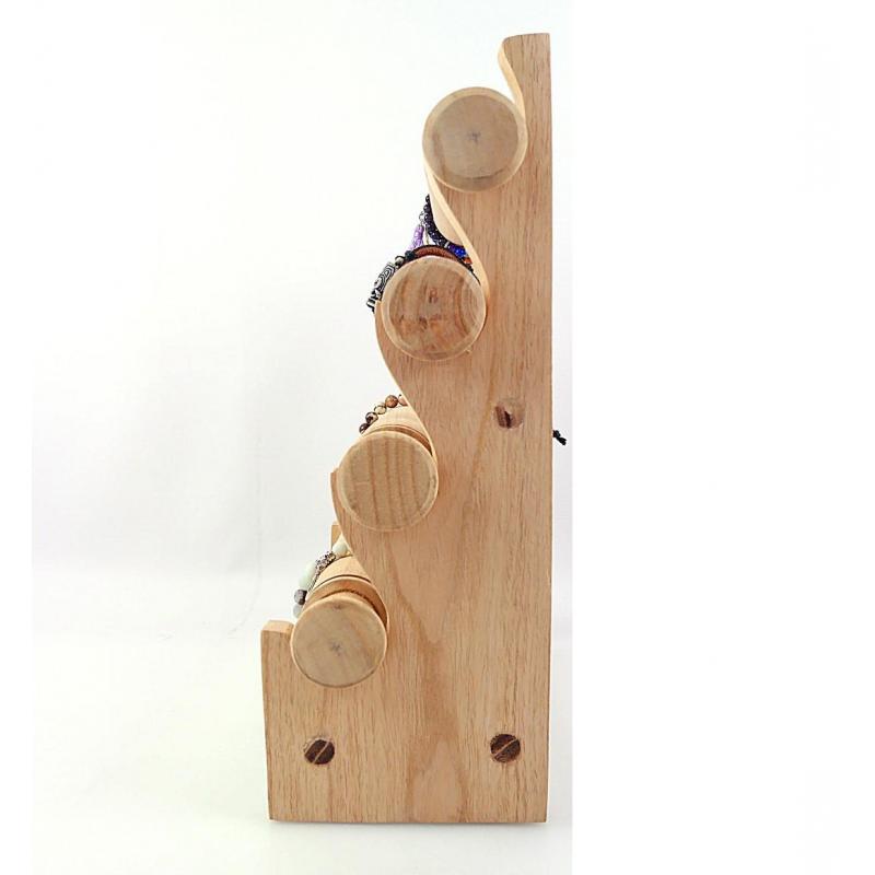 Grand présentoir à bracelets et montres 4 joncs en bois | Finition Bois brut naturel