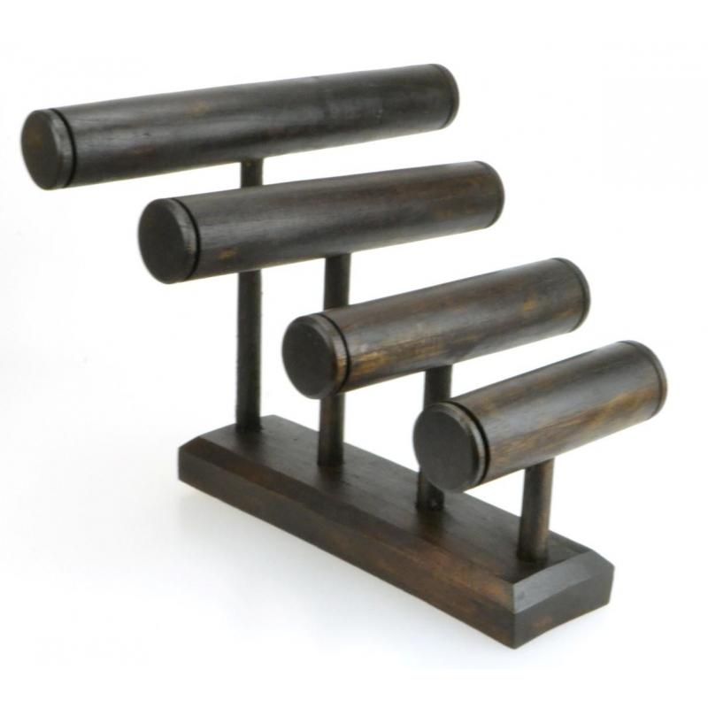 Grand Présentoir à Bracelets Nomade 4 joncs en bois | Finition "Chocolat"