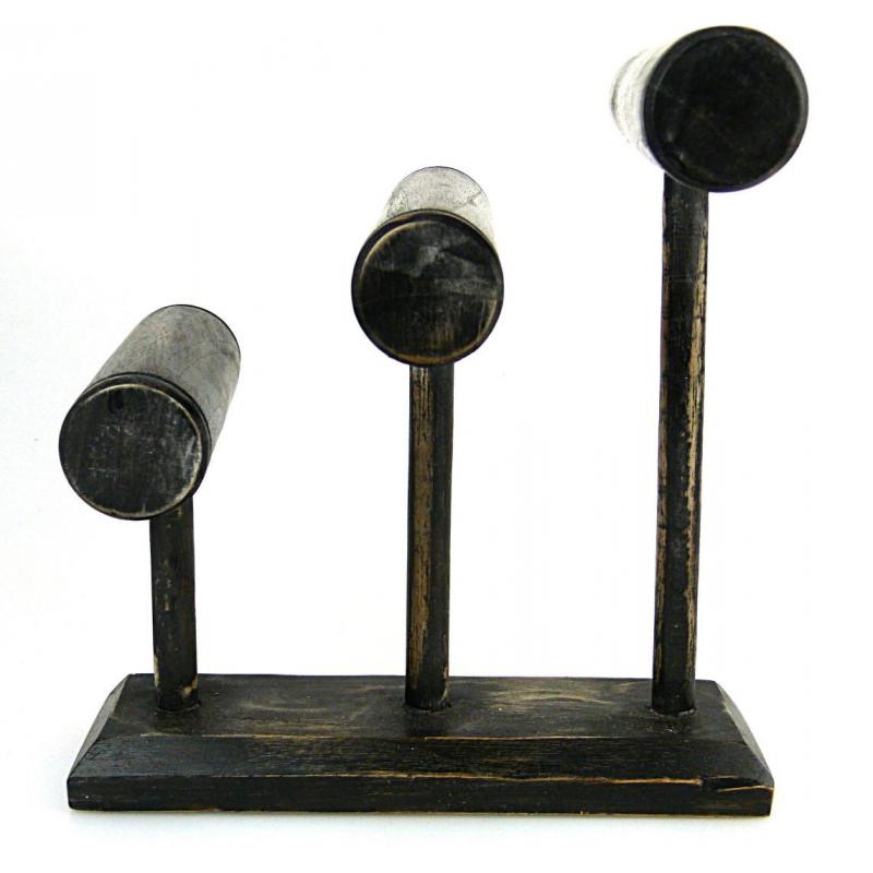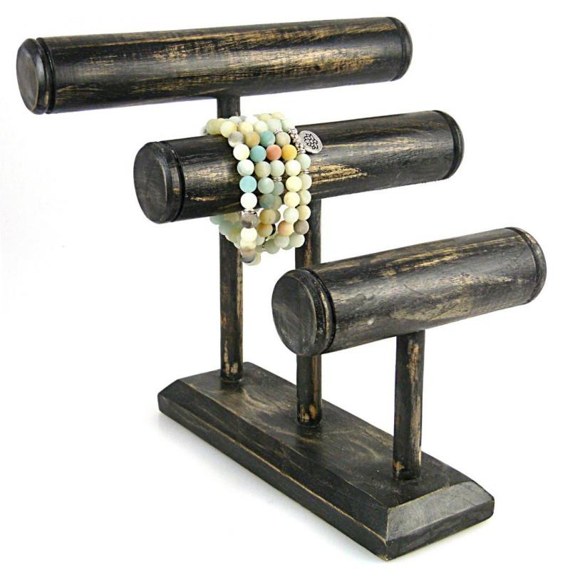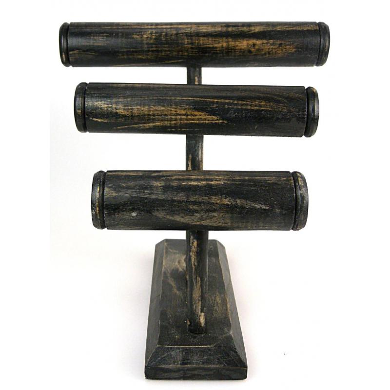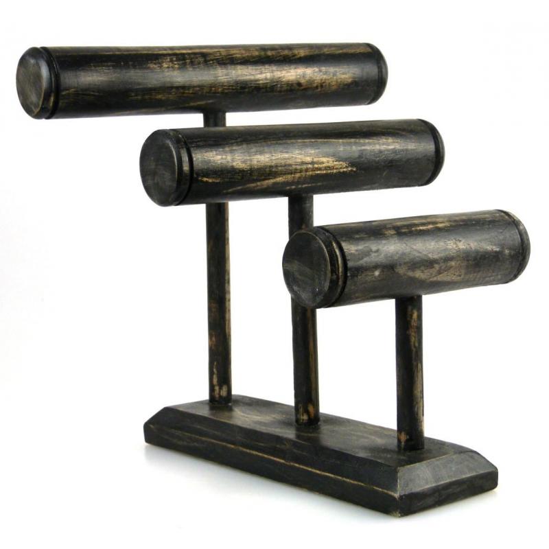 Présentoir bracelets et montres 3 joncs en bois massif finition "noir vintage"