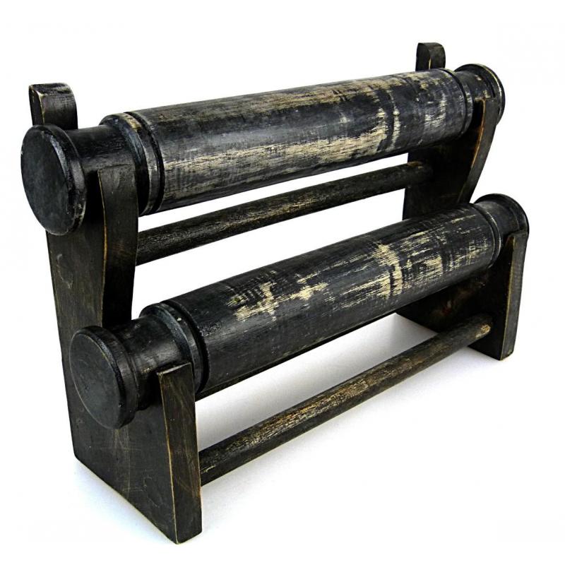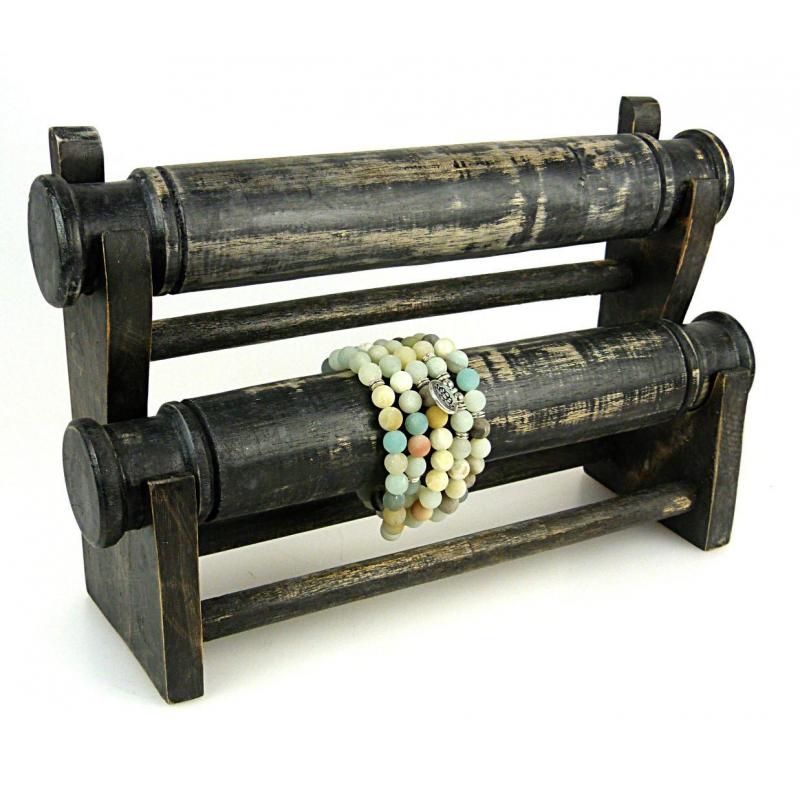 Présentoir bracelets et montres / Porte-bijoux 2 joncs en bois finition "noir vintage"