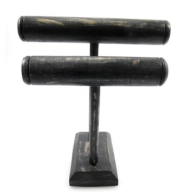 Présentoir à bracelets et montres 2 joncs en bois finition "noir vintage"