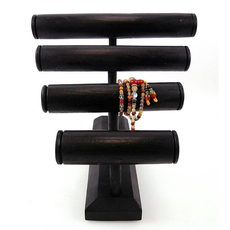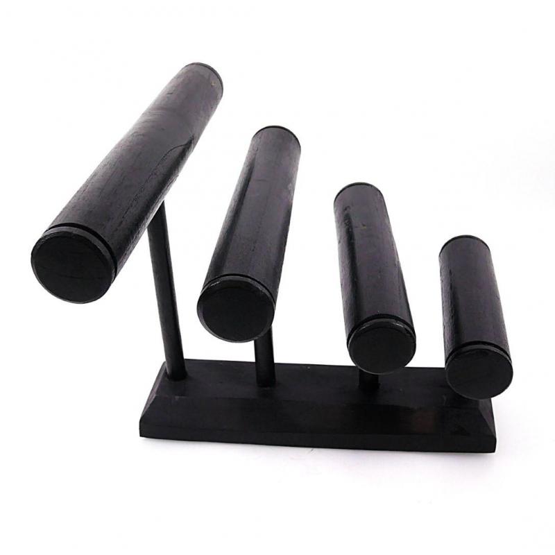 Grand présentoir à bracelets et montres 4 joncs en bois massif teinte "noir ébène"