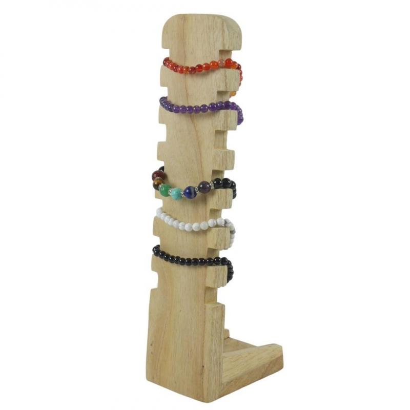 Présentoir à Bracelets cranté 30cm en bois massif | Finition Bois brut naturel