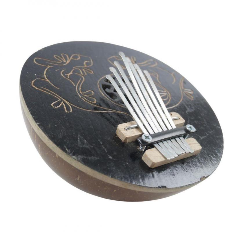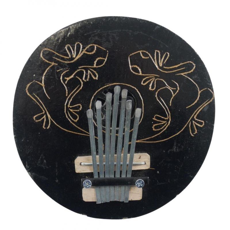 Sanza / Guitare à pouce en Noix de Coco - Motif sculpté 2 geckos