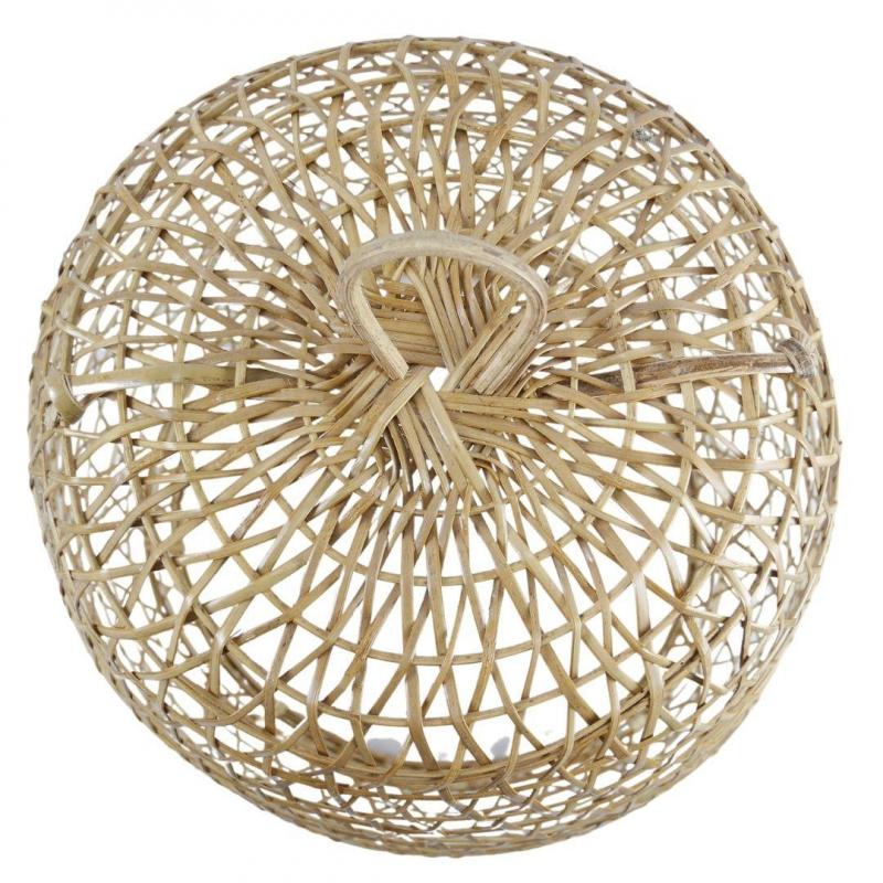 Hauteur totale 43cm environ, diamètre 33cm environ (peut varier de quelques centimètres). Matières : bambou et vannerie de rotin naturel. Equipement électrique non fourni (puissance maximum recommandée 60W). Compatible "Kit rosace".
