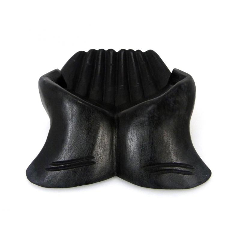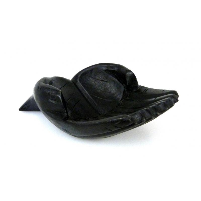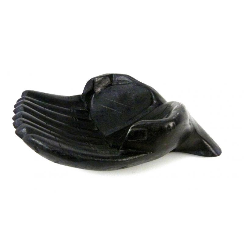 Sculpture Mains en bois. Vide-poche / présentoir à cartes de visite. Teinte noire
