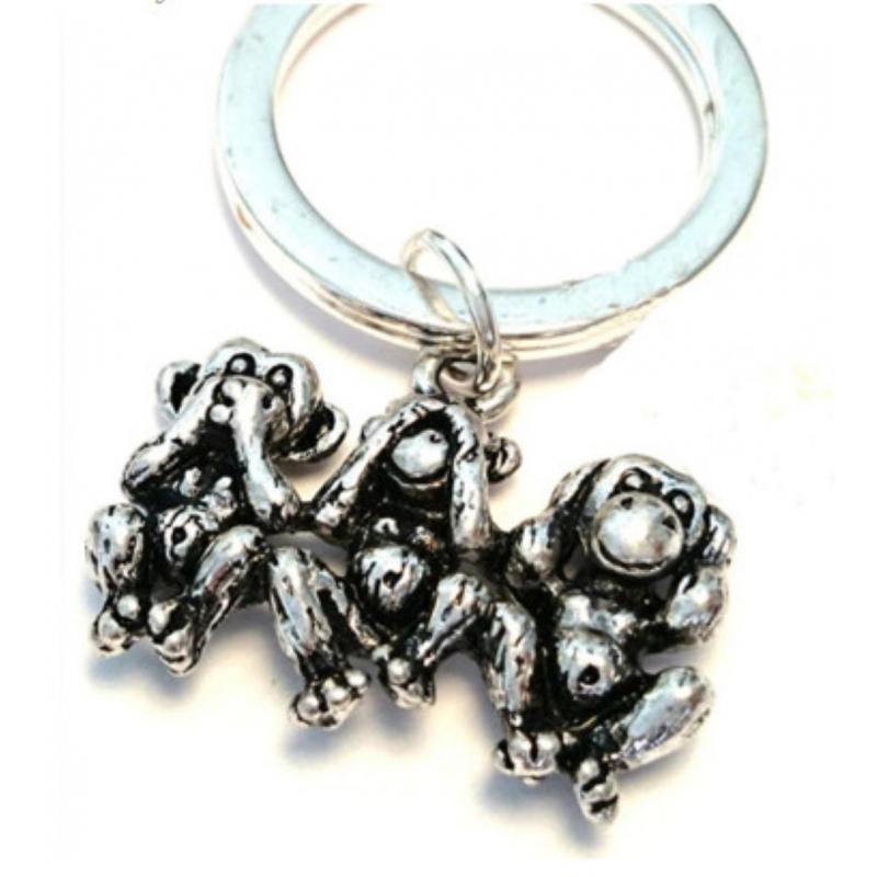 Porte-clé 3 singes de la sagesse en métal