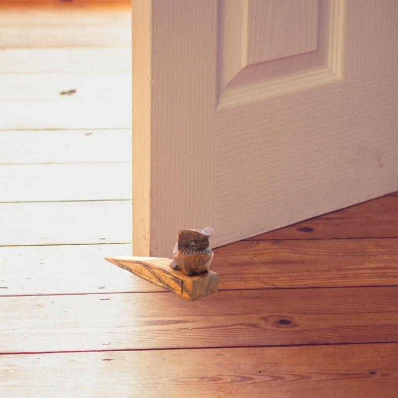 Bloque-porte hibou/chouette en bois teinté sculpté à la main