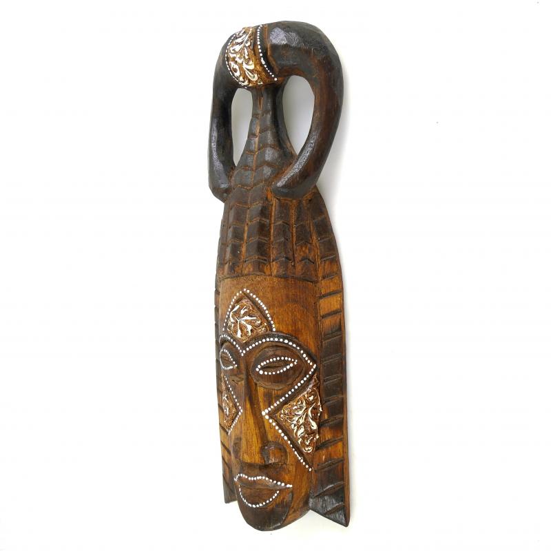 Masque Africain marron en bois peint et sculpté main style tribal 30cm