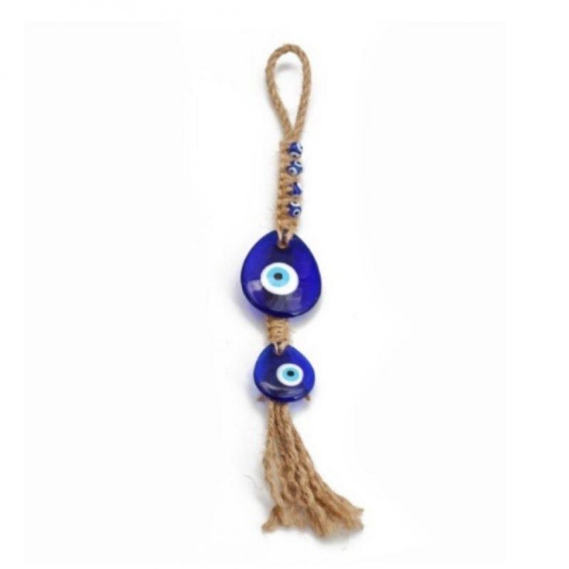 Double Œil turc sur corde / Amulette Œil bleu à suspendre