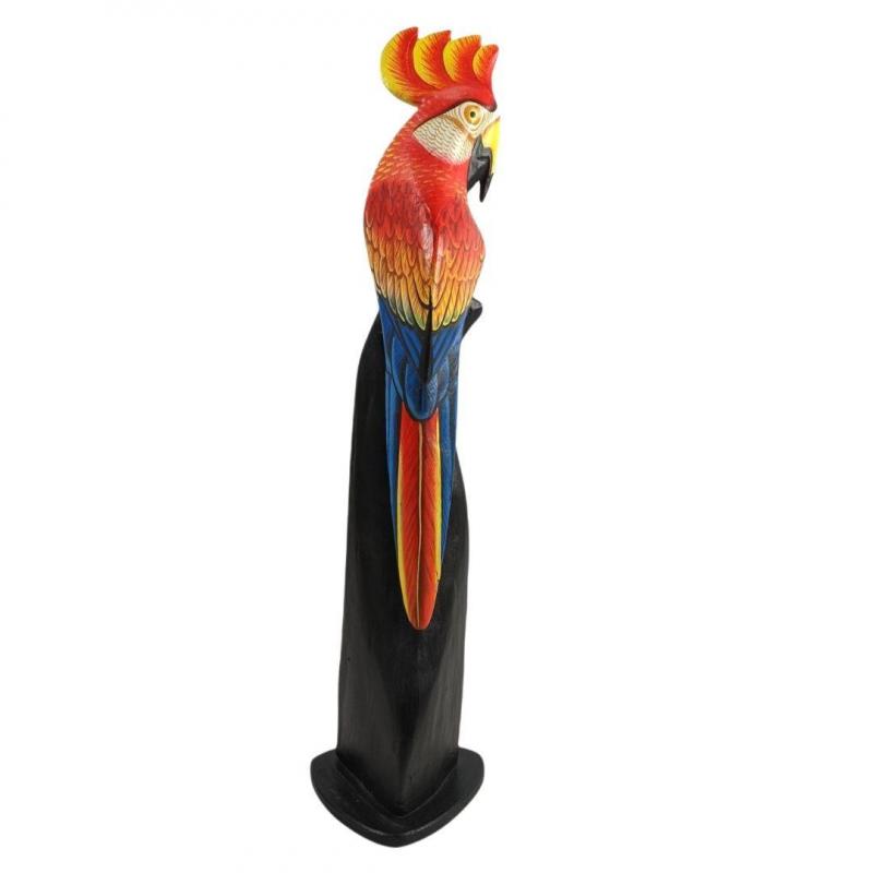 Perroquet 50cm en bois peint à la main - Coloris Rouge, Bleu et Jaune