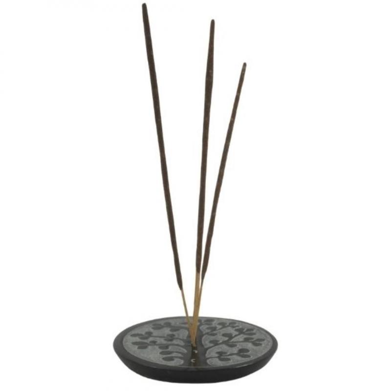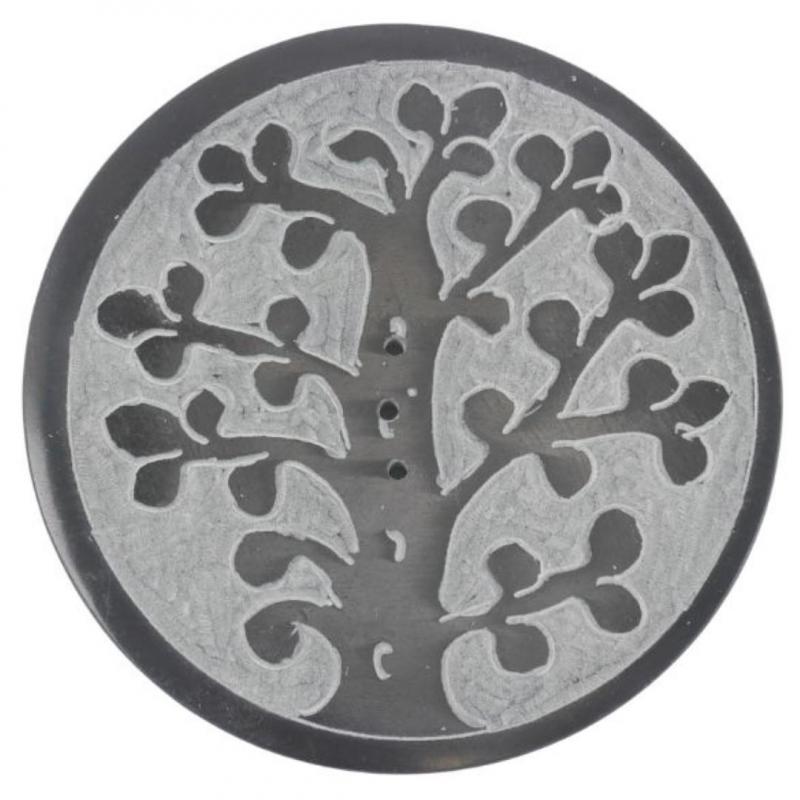 Porte-encens rond ø10cm noir et blanc en Pierre à savon - Symbole arbre de vie