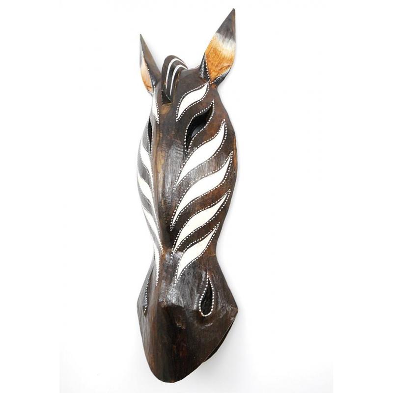 Masque Zèbre en bois 50cm. Décoration murale exotique africaine
